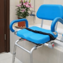 Sedia da vasca o doccia con struttura in alluminio regolabile in altezza.