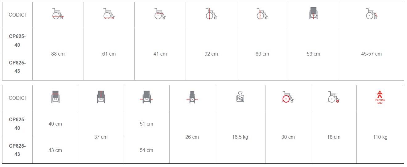 Con un peso massimo supportato di 110 kg, la CP625 di Moretti rappresenta la scelta perfetta per chi desidera una carrozzina da transito compatta, pieghevole e resistente, ideale per l’assistenza, i viaggi o l’uso quotidiano, disponibile in larghezze di seduta da 40 e 43 cm.