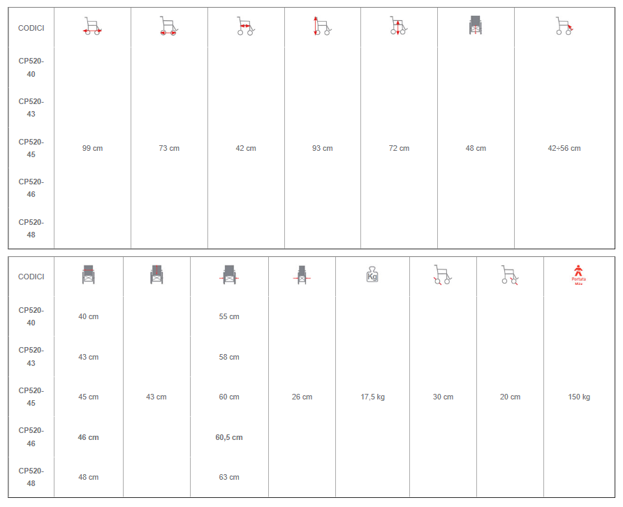 Disponibile in diverse varianti di seduta, da 40 a 48 cm, la CP520 è una scelta ideale per chi cerca qualità, sicurezza e praticità.
