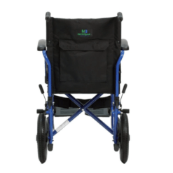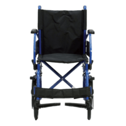 La carrozzina è dotata di un telaio in acciaio verniciato blu, progettato per garantire durata e stabilità. La struttura pieghevole consente un facile trasporto e un comodo stoccaggio, rendendola perfetta per l’uso sia in casa che in viaggio.