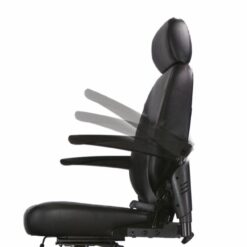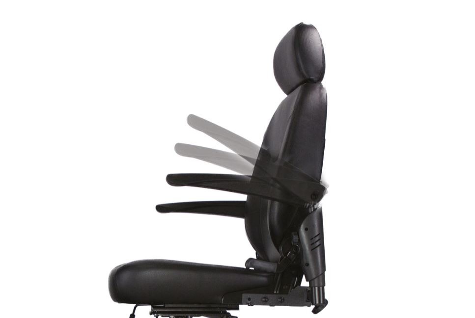 Il sedile imbottito ruotante a 360°, regolabile in altezza e profondità, insieme allo schienale ribaltabile e reclinabile completo di poggiatesta regolabile, garantiscono una posizione personalizzata. I braccioli ribaltabili e regolabili, il manubrio ergonomico regolabile in inclinazione e il cruscotto con comandi multifunzione completano l'esperienza di guida personalizzata.