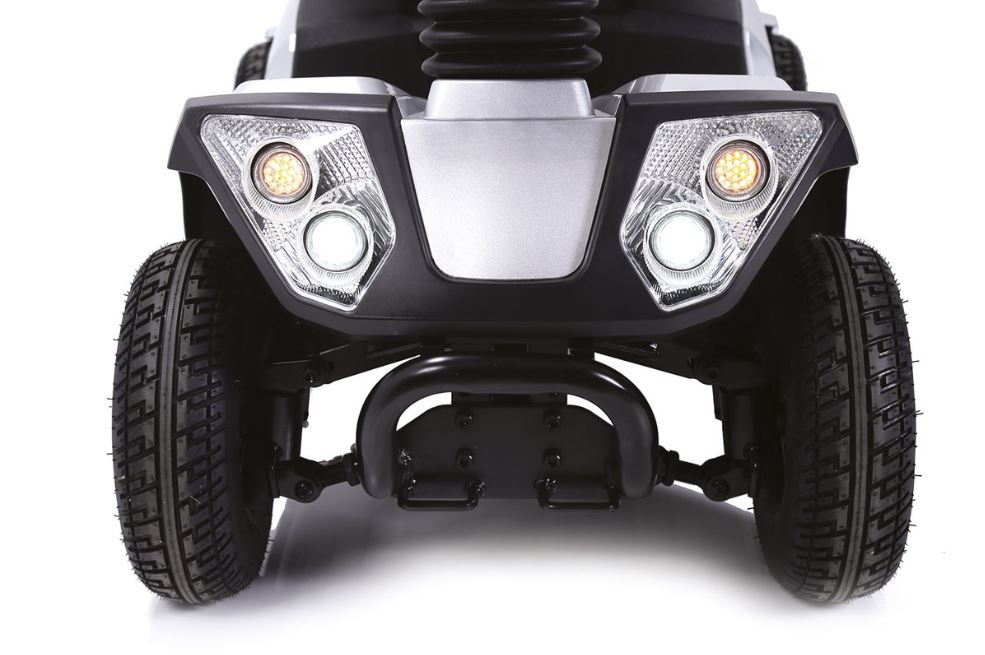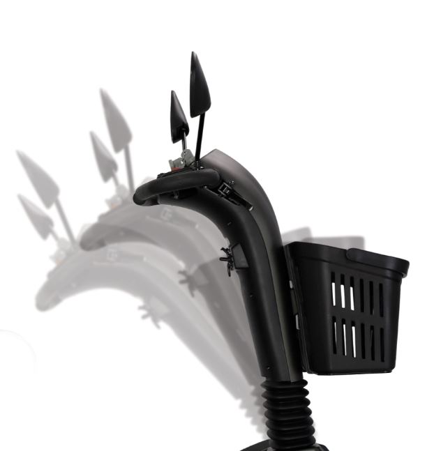 Con una velocità massima di 10 Km/h e un'autonomia di circa 34 Km, questo scooter elettrico supera agevolmente ostacoli fino a 10 cm e affronta pendenze fino al 21%.