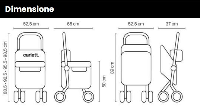 Le ruote girevoli con varie posizioni, silenziose e resistenti, rendono gli spostamenti fluidi e piacevoli. La borsa estraibile, con una capacità di carico consigliata di 15 kg, è impermeabile e offre spazio sufficiente per le necessità quotidiane.