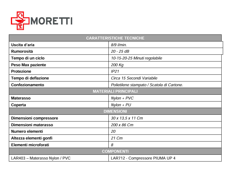Il kit antidecubito a ciclo alternato Moretti LAD480 è una soluzione affidabile per chi necessita di un supporto efficace nella prevenzione delle lesioni da pressione.
