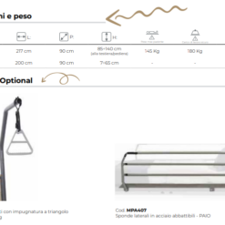 Inoltre, in caso di emergenza, un sistema a batteria garantisce l’abbassamento in posizione orizzontale anche senza alimentazione elettrica. Completano il quadro una rete a doghe metalliche, telecomando con blocco, ruote piroettanti con freno e ganci riposizionabili.