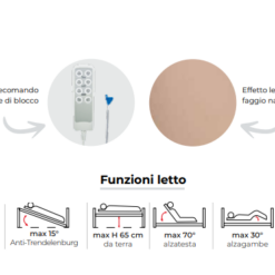 Grazie alla struttura ribassata e alla regolazione elettrica completa, questo letto ortopedico offre un mix perfetto tra sicurezza, comfort ed estetica, adattandosi con naturalezza agli ambienti domestici grazie all’effetto legno di faggio naturale.