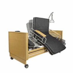 Con le sponde laterali a scomparsa, le 4 ruote piroettanti con freno di stazionamento e il maniglione a triangolo, questo letto assicura la sicurezza e la facilità di movimento. I 7 motori LINAK, controllati da 2 semplici telecomandi, consentono di effettuare tutte le movimentazioni necessarie con precisione.