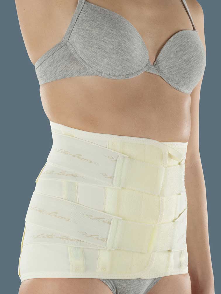 | CARATTERISTICHE | Struttura in tessuto Sensitive®, elastico,traspirante, indemagliabile e antistatico, Tiranti elastici per un sostegno variabile e personalizzato, Chiusura anteriore a Velcro®, Parte addominale rinforzata da stecche a spirale in posizione obliqua |