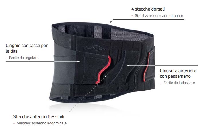 4 stecche dorsali semirigide per stabilizzare l'area sacrolombare, 2 stecche addominali flessibili
