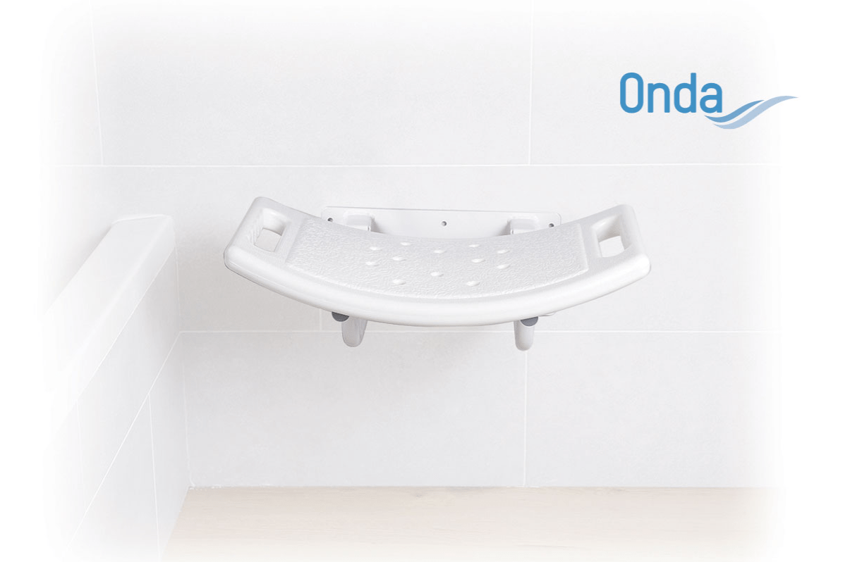 Ribaltabile con appoggio a parete. Struttura in acciaio verniciato. Seduta in polietilene.