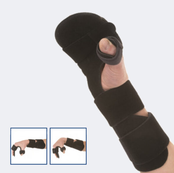 Serve a mantenere il corretto allineamento di polso, mano e dita, stabilizzando il pollice in posizione neutra per favorire la riabilitazione dopo lesioni neurologiche.