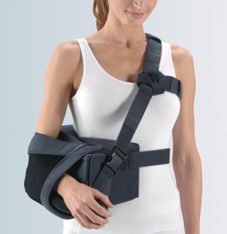 Il tutore è progettato per immobilizzare la spalla in abduzione 15° con regolazione intra-extra rotazione ±20°, ideale in fase post-operatoria o per trattamenti conservativi.