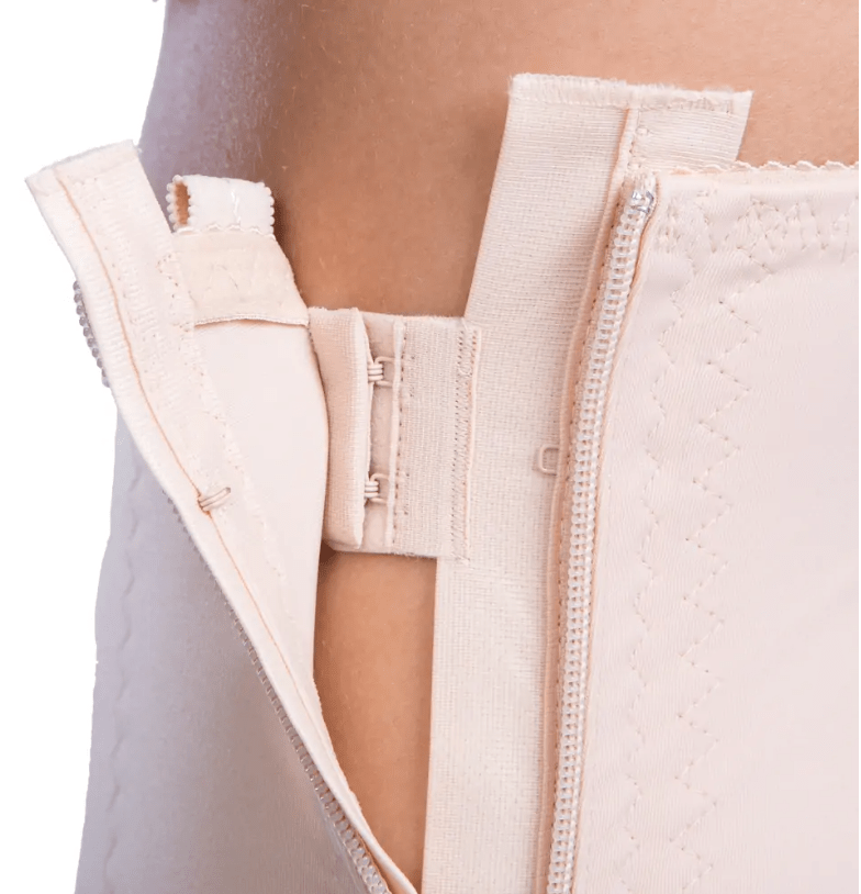 - chiusura laterale con gancetti e zip su entrambi i lati, fornita di una striscia di tessuto protettiva così da non irritare in nessun modo la zona operata