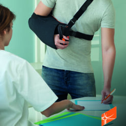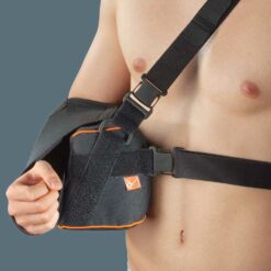 | CARATTERISTICHE | Struttura in gommapiuma ad alta densità ricoperta da tessuto tramato in fibra d'argento a contatto con il corpo, Cuscino con sponda anteriore per la stabilità ottimale; area appoggio-braccio inclinata, per un miglior comfort, Manicotto a protezione del collo, Rivestimento e manicotti con nylon garzato esterno per attacchi del Velcro®, Tasca reggibraccio in materiale traspirante, Tiranti con fissaggio a fibbie e regolabilia Velcro®, Cinturino di sostegno del pollice, Abduzione regolabile a 10° o 15° mediante segni-guida evidenziati sul cuscino, per l'applicazione corretta della sacca reggibraccio |